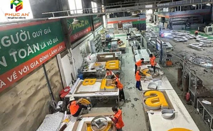Các sản phẩm chữ nổi của Phúc An đảm bảo độ chính xác cao, đường nét sắc sảo, chân chữ đều đẹp và hoàn thiện chỉn chu. Đội ngũ gia công luôn làm việc cẩn thận, kiểm tra chất lượng từng sản phẩm trước khi lắp đặt hoặc giao cho khách hàng.