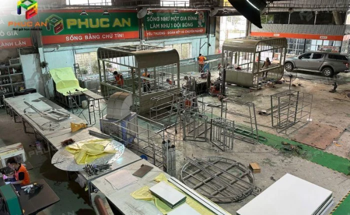Vì toàn bộ khâu sản xuất được thực hiện tại nhà máy 2000m2 của Phúc An, khách hàng không phải trả thêm chi phí qua trung gian như các đơn vị thiết kế không có nhà máy sản xuất. Đây là một lợi thế rõ rệt khi lựa chọn Phúc An, giúp khách hàng tiết kiệm đến 20–30% chi phí so với thị trường mà vẫn đảm bảo chất lượng sản phẩm đầu ra đạt chuẩn.