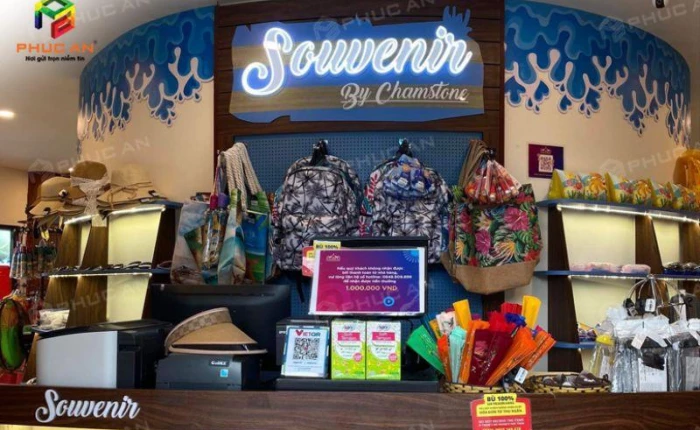 Với kinh nghiệm triển khai nhiều chuỗi cửa hàng lưu niệm cho các thương hiệu lớn như SunGroup, ChamStone, An Decor..., Phúc An thấu hiểu đặc thù ngành nghề và hành vi tiêu dùng trong mô hình này. Phúc An chú trọng việc phân bổ không gian khoa học, bố trí các khu trưng bày sản phẩm hợp lý nhằm tăng trải nghiệm mua sắm cho khách hàng. Đội ngũ kiến trúc sư sẽ kết hợp hài hòa giữa yếu tố thương hiệu, tính thẩm mỹ và yếu tố phong thủy để tạo nên thiết kế đặc trưng và thu hút. Trong thi công, Phúc An đảm bảo đồng bộ chất liệu, màu sắc, ánh sáng và nội thất theo bản thiết kế đã được duyệt, tối ưu chi phí bằng sản xuất trực tiếp tại nhà máy 2000m2.